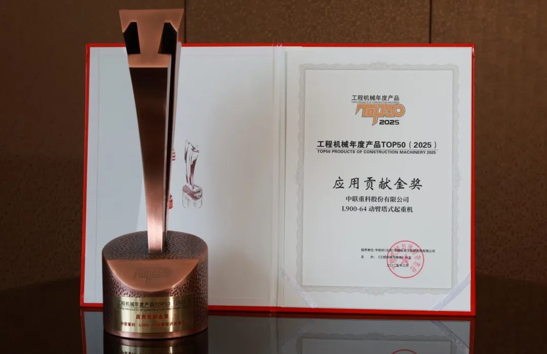 3月31日,“2025工程機械年度產品TOP50”榜單發布在北京隆重。中聯重科2款產品憑借卓越的技術創新與市場表現,從眾多參評產品中脫穎而出,其中L900-64動臂塔式起重機斬獲應用貢獻金獎,ZE900G履帶式液壓挖掘機斬獲TOP50獎。