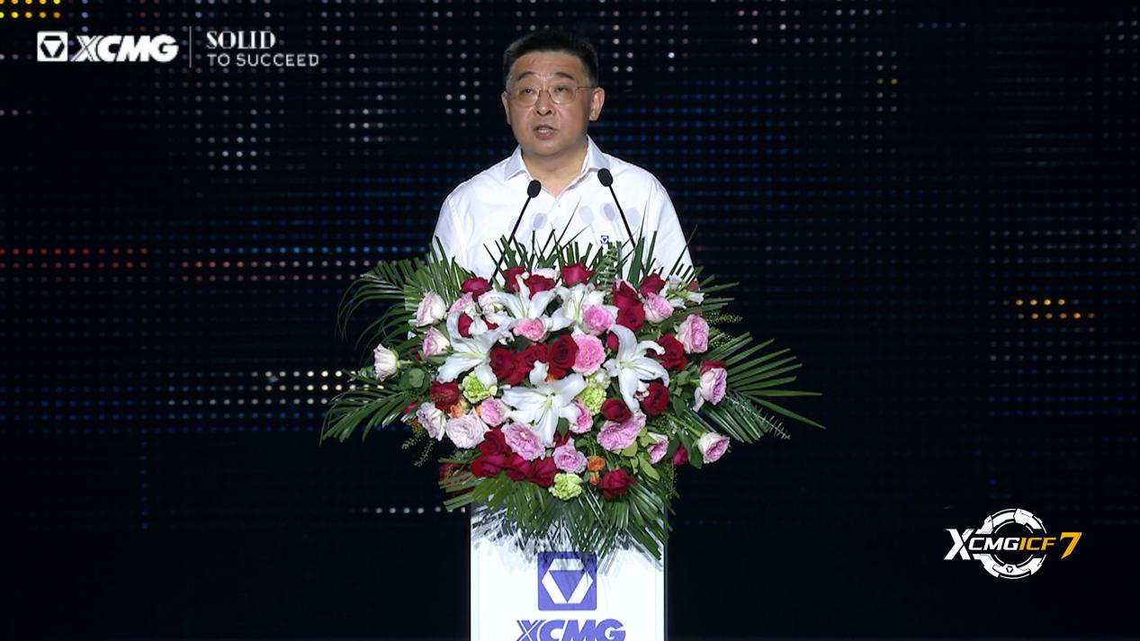 現(xiàn)場,楊東升董事長向來自全球的伙伴表達感謝和敬意,并熱情洋溢地發(fā)表致辭,古語云“志合者不以山海為遠”,徐工全球化征程中的每一次突破與跨越都飽含著全球客戶的信任與托付,凝聚著全球客戶的智慧與貢獻,書寫著全球客戶陪伴徐工共同成長的時代篇章。