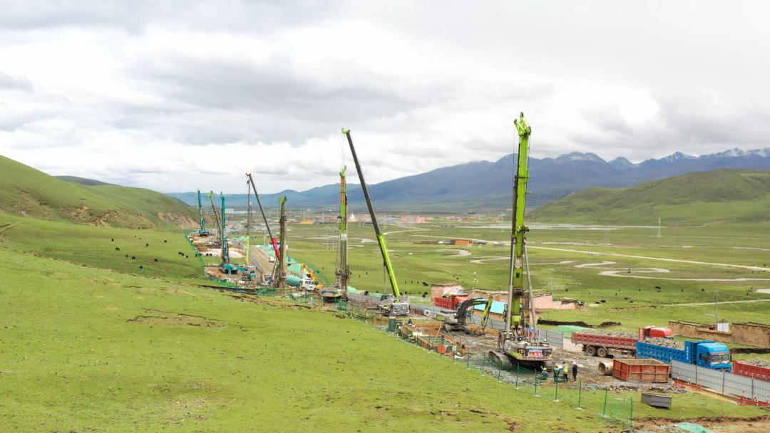 中聯重科旋挖鉆機群、起重機等設備在川西高原助建理塘縣格者村特大橋