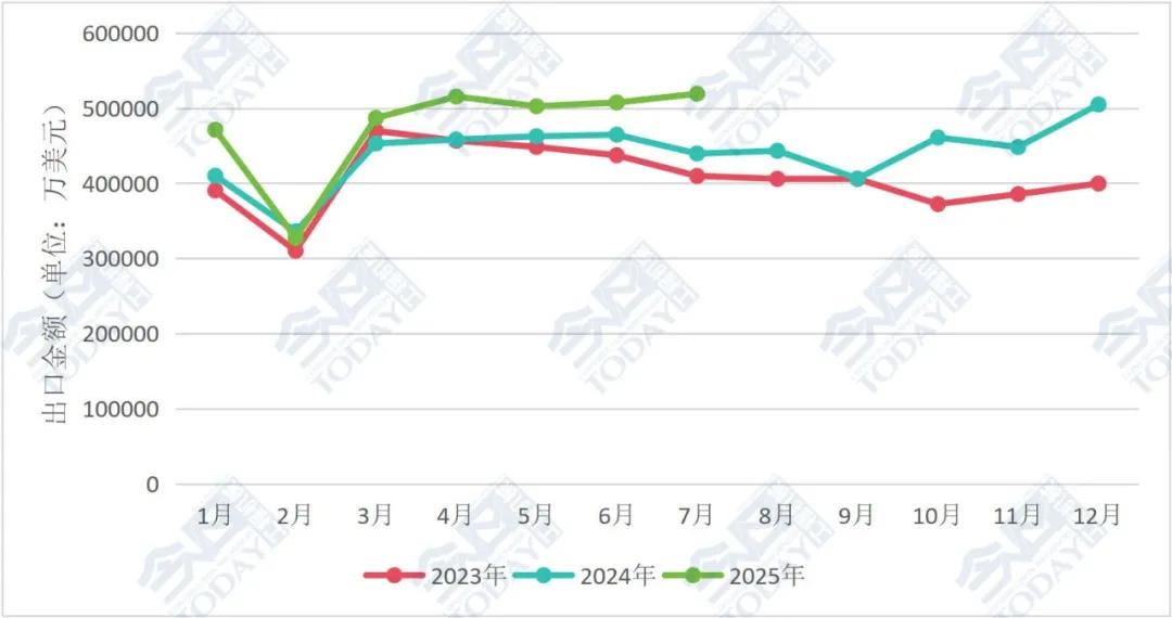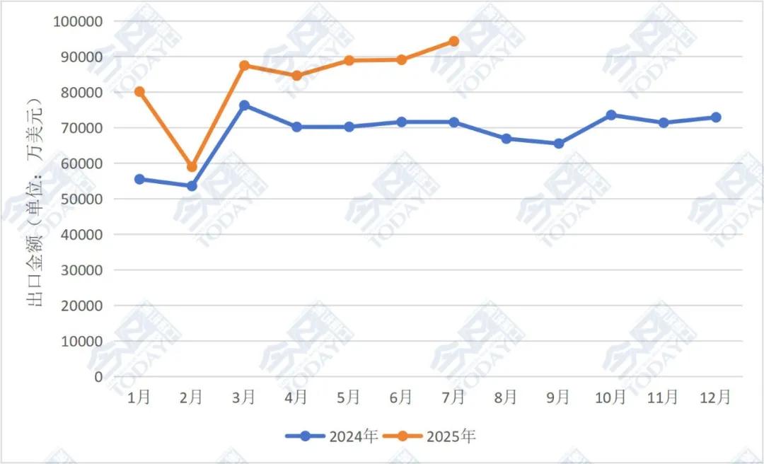 從環比來看,2025年7月我國挖掘機(含履帶挖掘機和輪式挖掘機)出口總額為9.43億美元,較6月的8.91億美元增長5.85%。