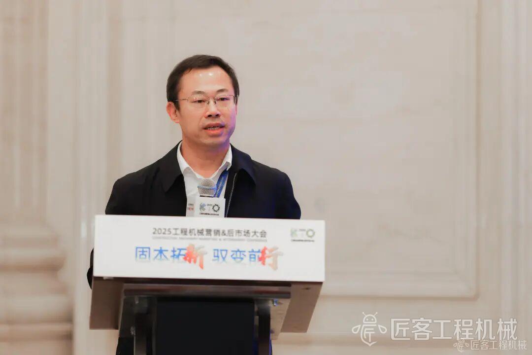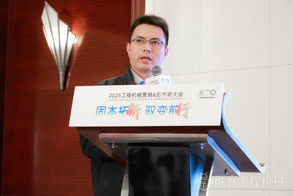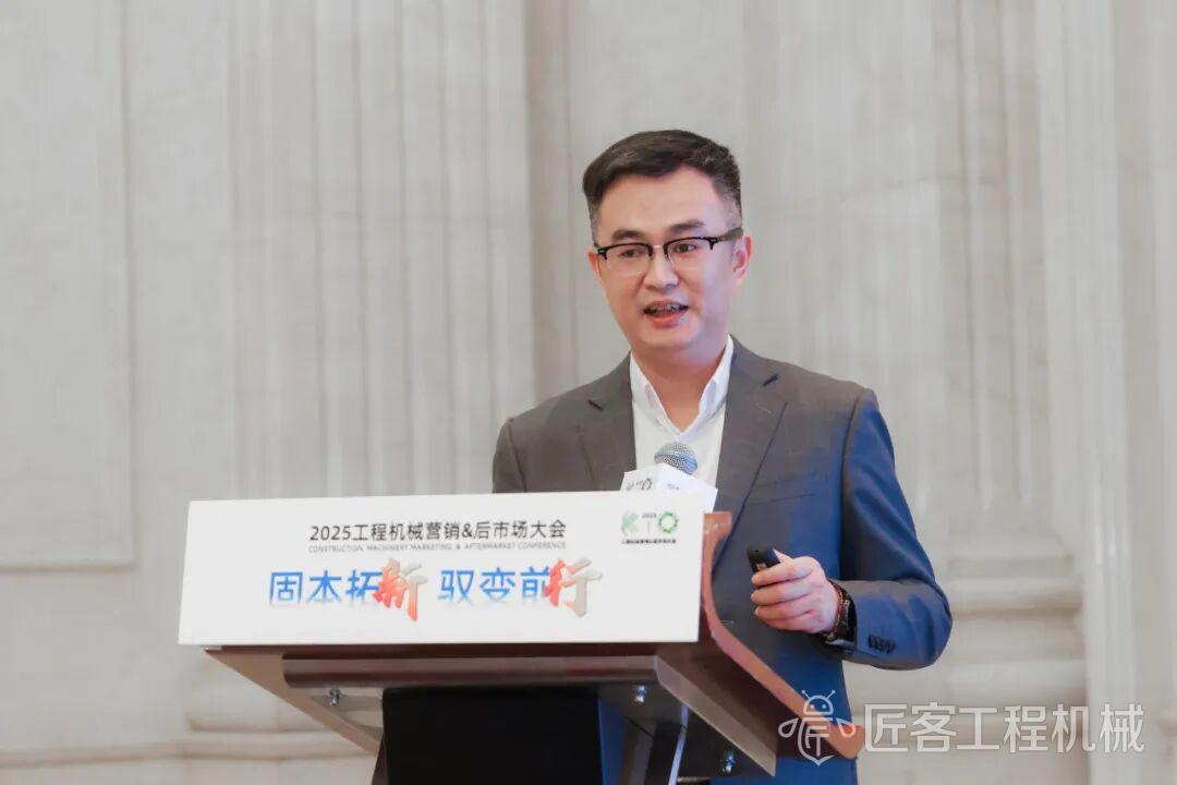趙學峰做了題為《固本馭變:工程機械后市場的守與攻》的精彩演講。面對當前工程機械后市場的變革,趙學峰指出,企業需秉持“固本與馭變并重”的戰略:一方面通過構建數字化閉環服務流程、優化備件供應鏈與維修服務網絡、提供全生命周期定制化服務,夯實存量市場根基,以高效響應和精準運營提升客戶粘性;另一方面主動搶抓增量機遇,聚焦節能設備改造、電動工程機械配套服務、數字服務平臺搭建及AI遠程診斷等新賽道,挖掘新能源與數字化帶來的商業價值。