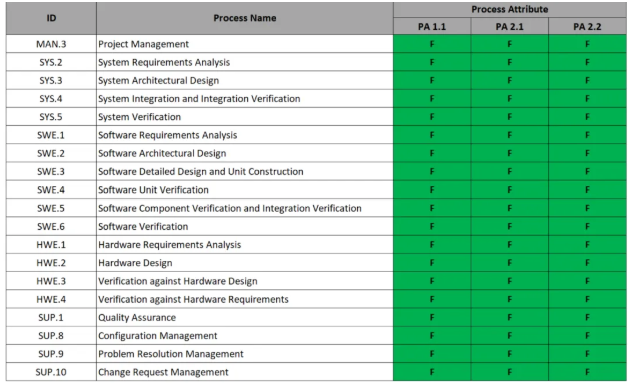 此次徐工以全部滿分(F)的卓越表現,成功通過ASPICE 4.0 CL2級的19個過程認證,表明徐工在研發流程規范性、可靠性及風險管控能力等方面已達到國際行業先進水平。