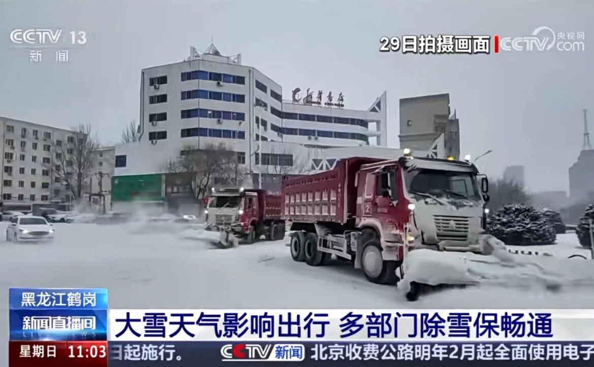 央視新聞等媒體聚焦多地迎來降雪,山東重工“鏟雪神器”戰風雪、保民生